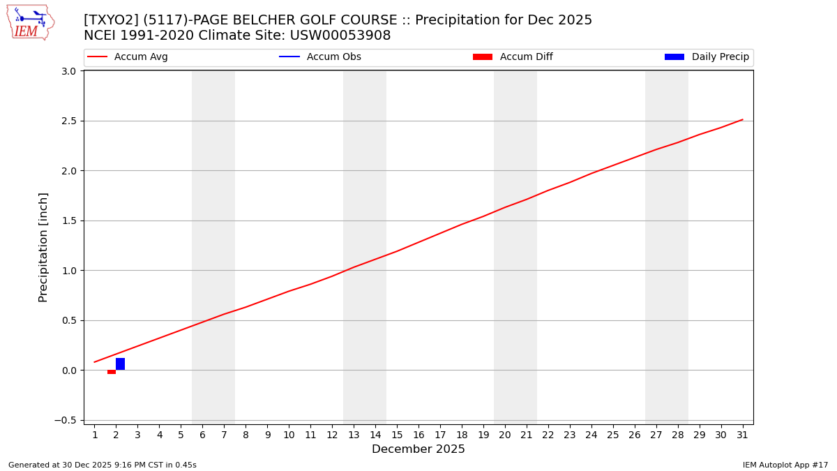 | 30 | 01 Precip: M | 02 Precip: 0.12 | 03 Precip: M | 04 Precip: M | 05 Precip: M | 06 Precip: M |